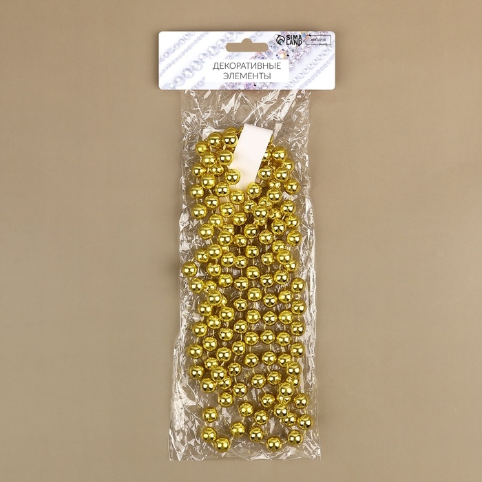 Бусы на нитях, круглые, 12 мм, 2 м, цвет золотой