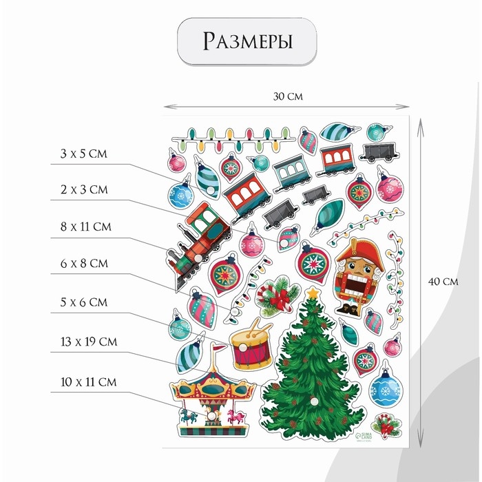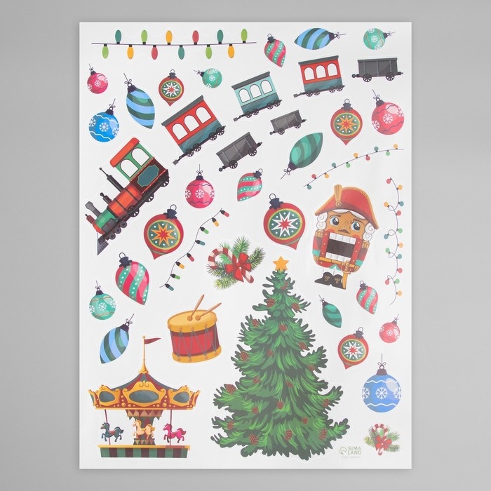 Наклейка интерьерная цветная "Ёлка и новогодние игрушки" 30х40 см
