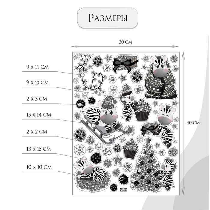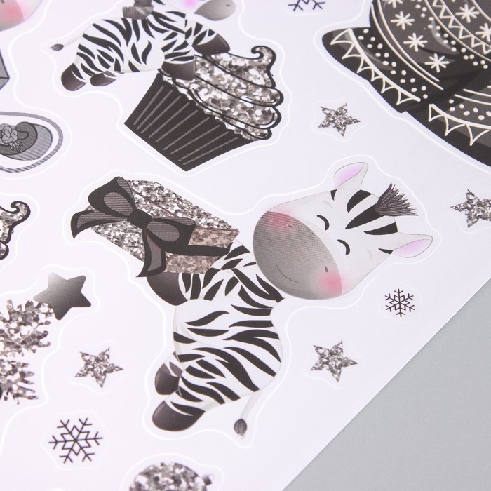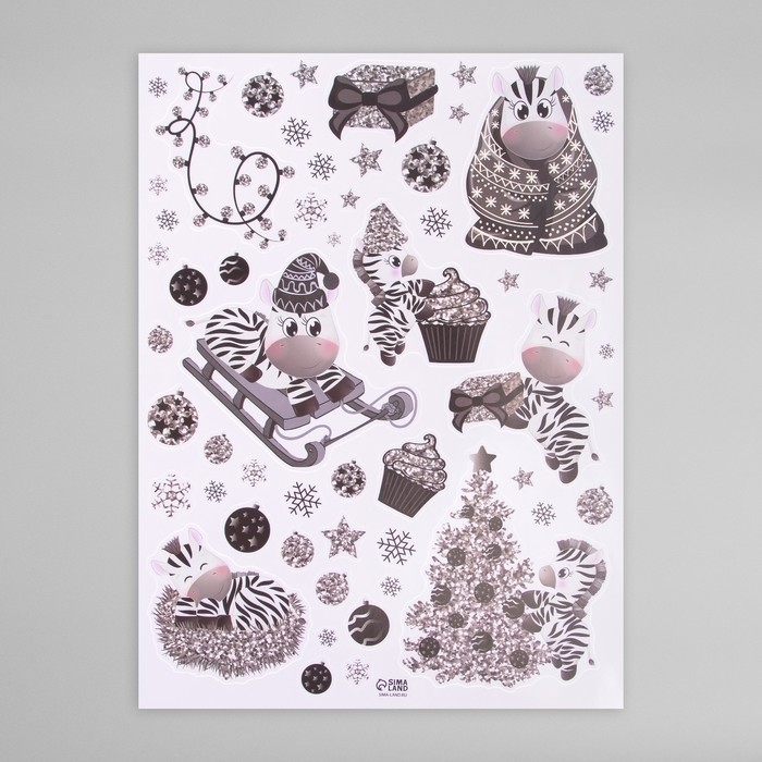 Наклейка интерьерная цветная "Зебра и серебристые снежинки" 30х40 см