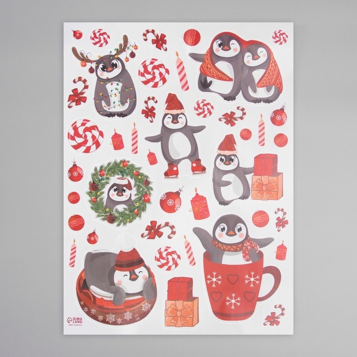 Наклейка интерьерная цветная "Пингвины и леденцы" 30х40 см