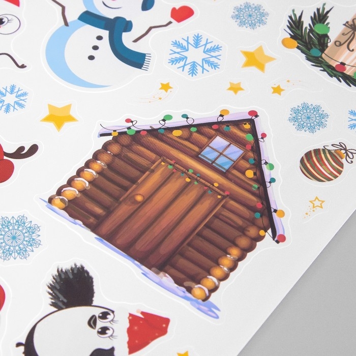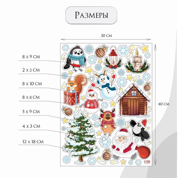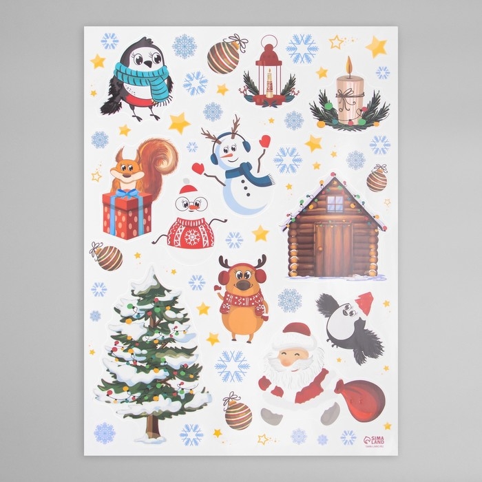 Наклейка интерьерная цветная "Дед Мороз со зверятами" 30х40 см