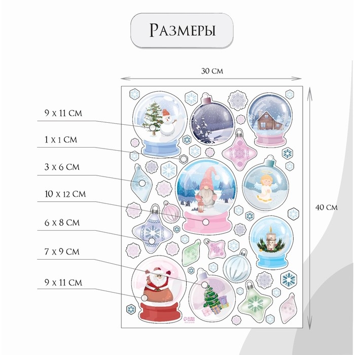 Наклейка интерьерная цветная "Снежные шары" 30х40 см