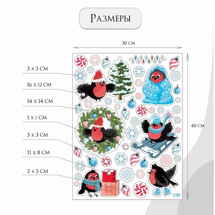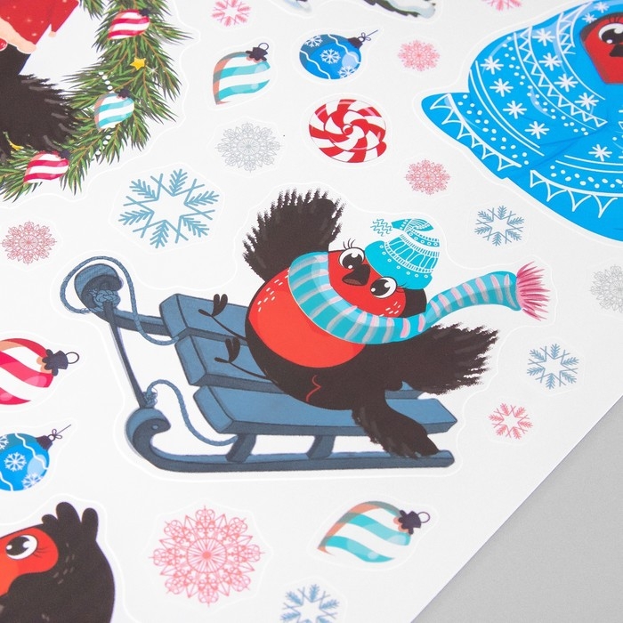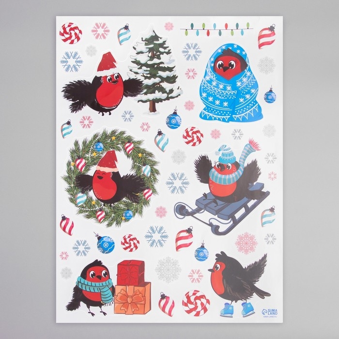 Наклейка интерьерная цветная "Новогодние снегири" 30х40 см