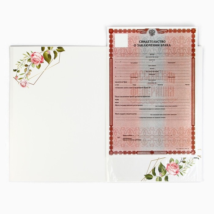 Свидетельство о заключении брака "Всё начинается с любви" тиснение, 23,5 х 31,3 см.