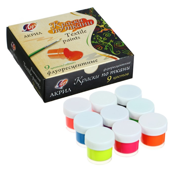 Краска по ткани, набор 9 цветов х 15 мл, Луч, флуоресцентная, акриловая на водной основе