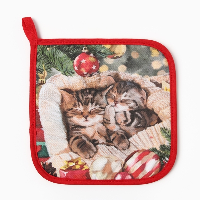 Новый год. Прихватка Этель "Счастливы вместе" саржа, 19х19см,100% хл,ватин 250г/м2