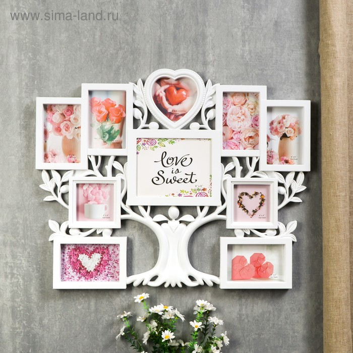 Фоторамка пластик на 10 фото 10х10,10х15,12х12,15х20 см "Дерево с плодами" белая 52х65х3 см 478534