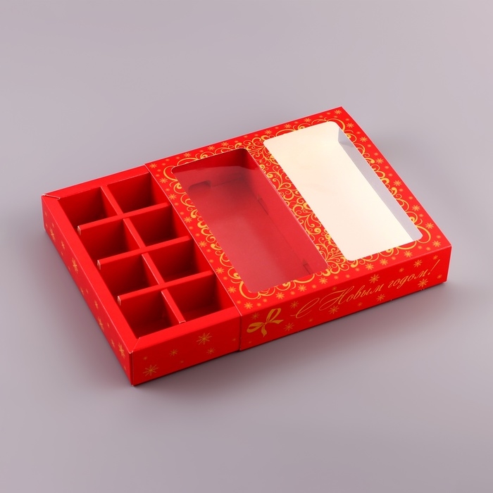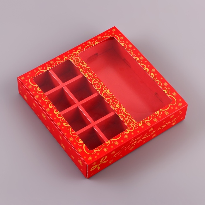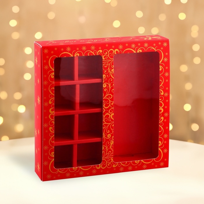 Изготовлена из высококачественного картона, она идеально подходит для 8 конфет и одной плитки шоколада.
