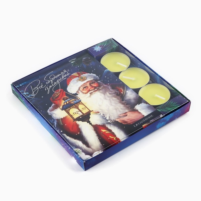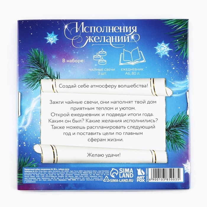 Подарочный набор новогодний ежедневник и чайные свечи «Всё сбудется загадывай»