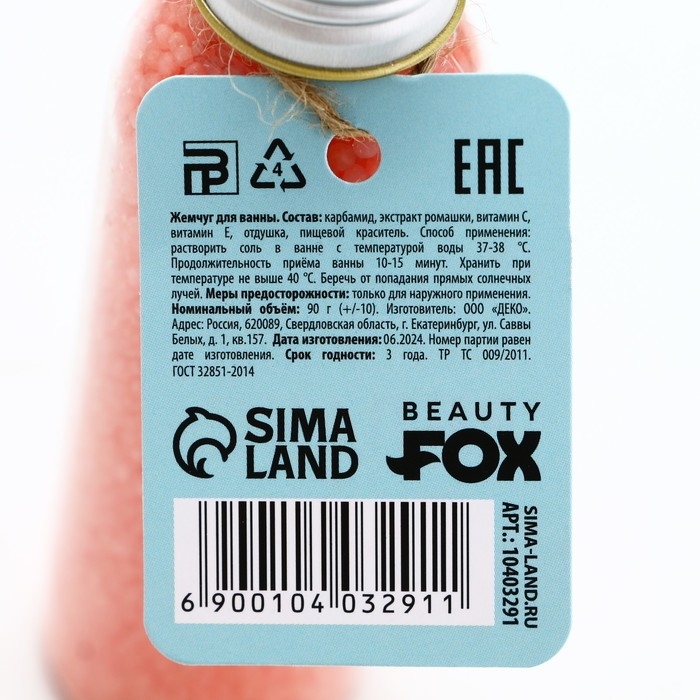 Жемчуг для ванны «Релакс тайм», 90 г, аромат клубники, BEAUTY FОХ
