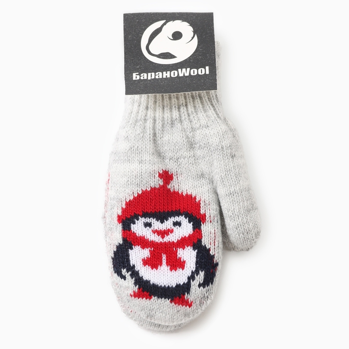 Новый год. Варежки двойные детские "Пингвин", цвет серый, р-р 16