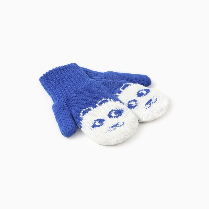 Варежки двойные детские "Мишка", цвет голубой, р-р 12