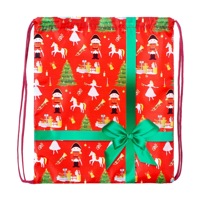 Новый год. Сумка под сладости 290 x 340 мм "Подарок с бантом" (мягкий полиэстер плотностью 210D)