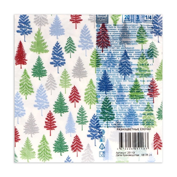 Новогодние салфетки бумажные Home Collection Сlassic «Разноцветные ёлочки», 3 слоя, 33х33 см, 20 шт