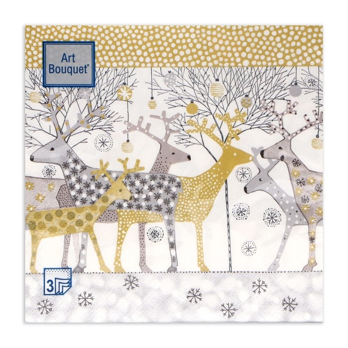Новогодние салфетки бумажные Art Bouquet «Новогодние олени, золото», 3 слоя, 33х33 см, 20 шт