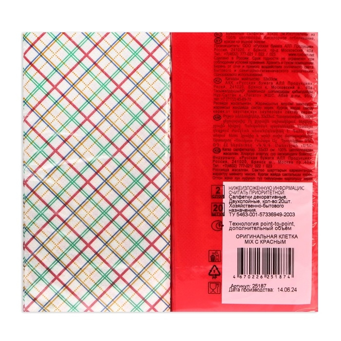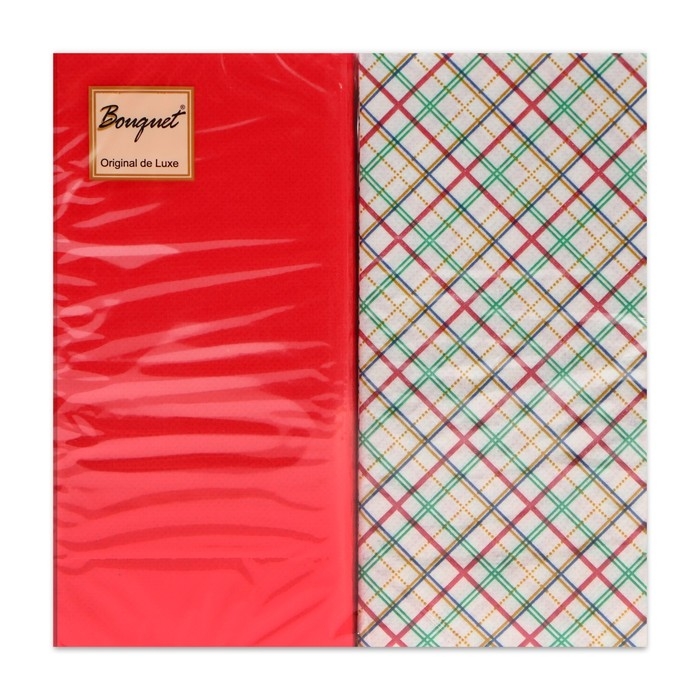 Новогодние салфетки бумажные Bouquet Original de luxe «Клетка + Красный», 2 слоя, 33х33 см, 20 шт.