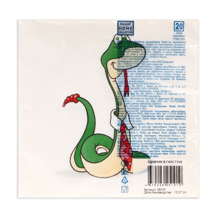 Новогодние салфетки бумажные Home Collection Сlassic «Удавчик в галстуке», 3 слоя, 33х33 см, 20 шт