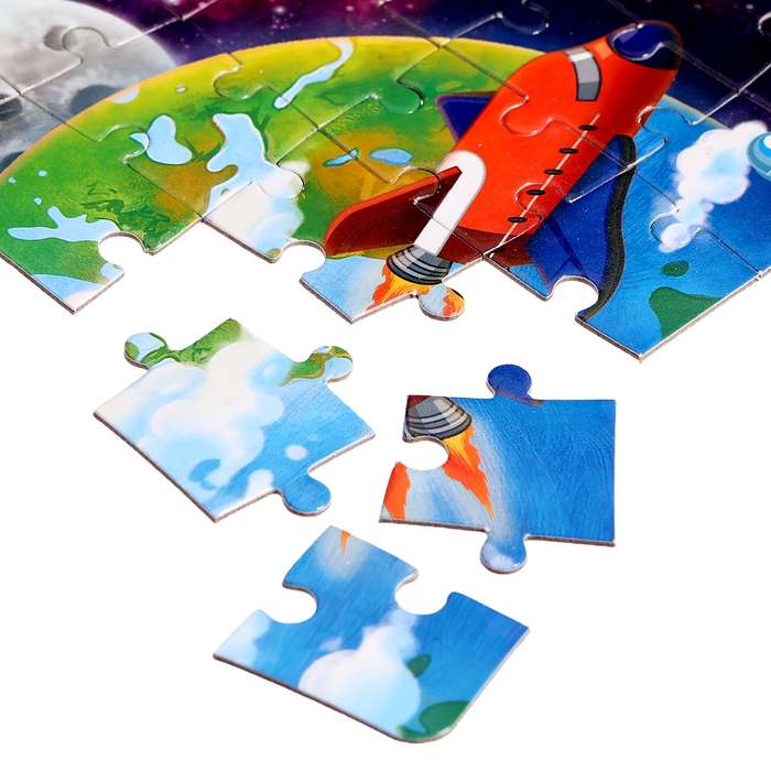 Ребёнок соберёт все 54 детали в одно целое, и получит красочную картинку размером 24,5 × 19 см.