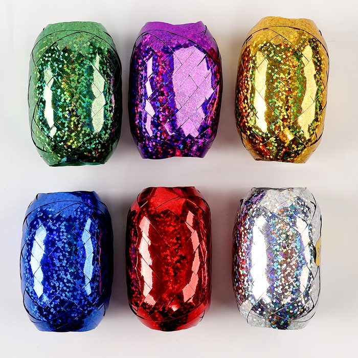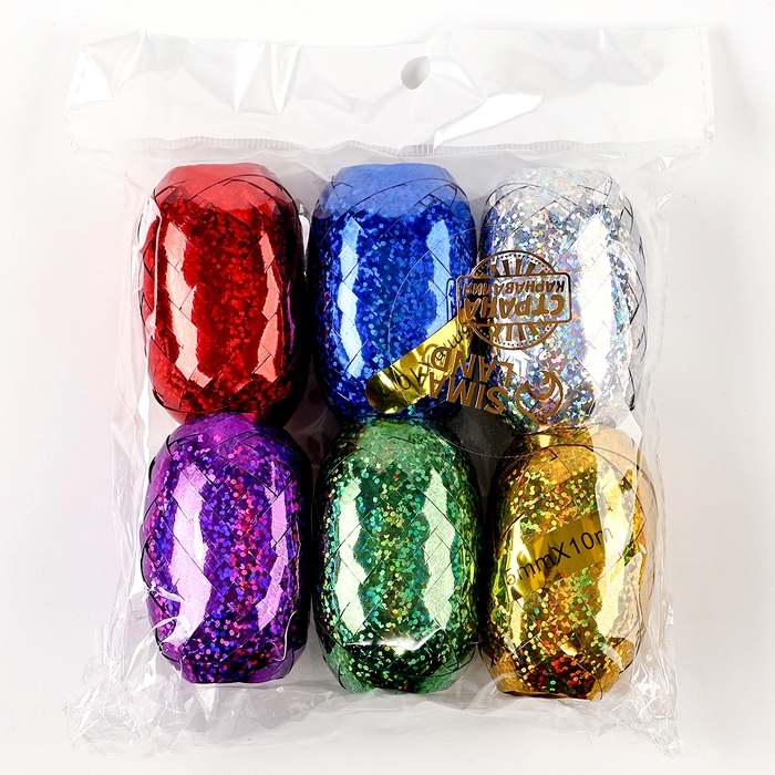 Набор декоративных лент с блёстками, длина 10 м, цвет МИКС, набор 6 шт.