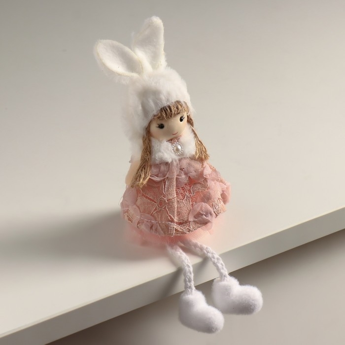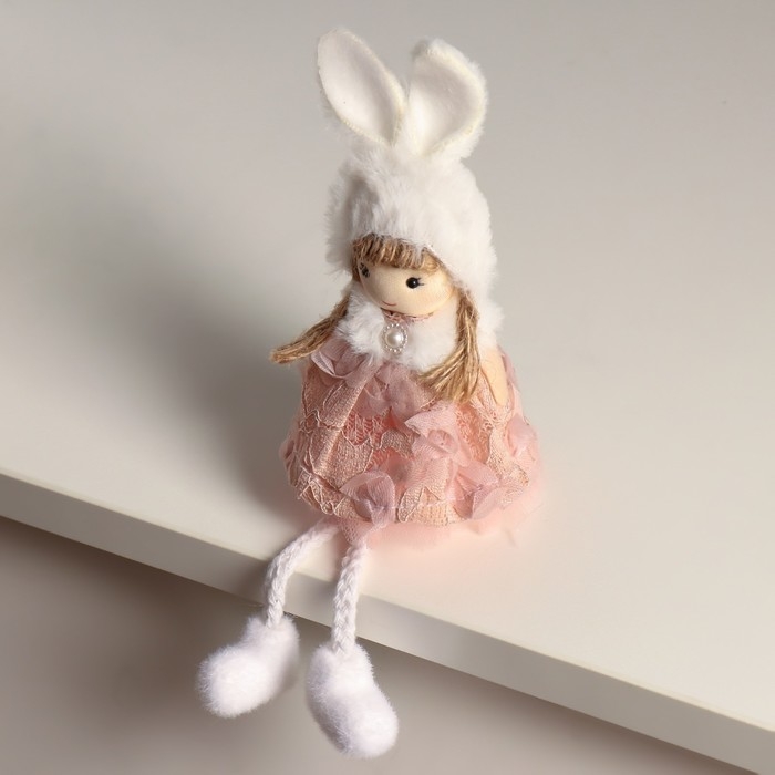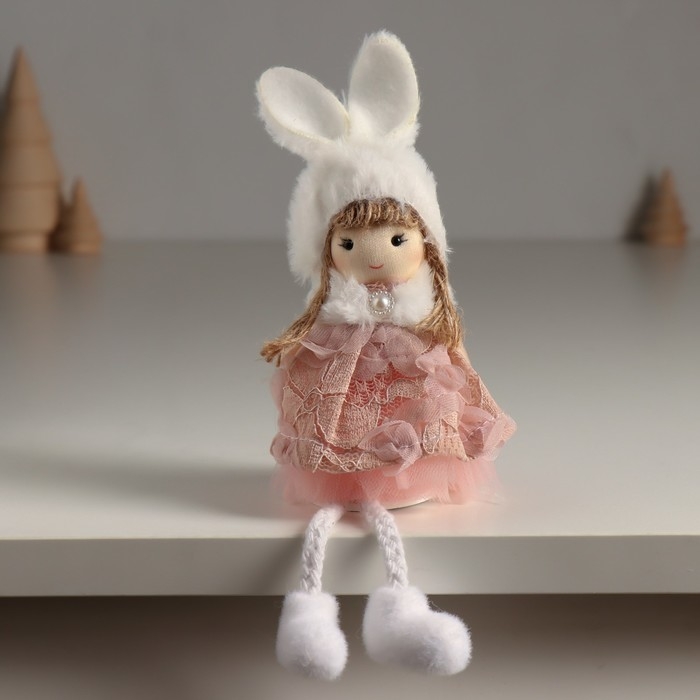 Кукла интерьерная "Ангелочек в цветочном платье в шапке с ушками" 5,5х7х19,5 см