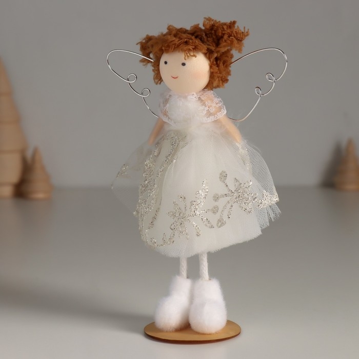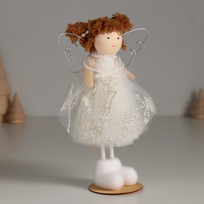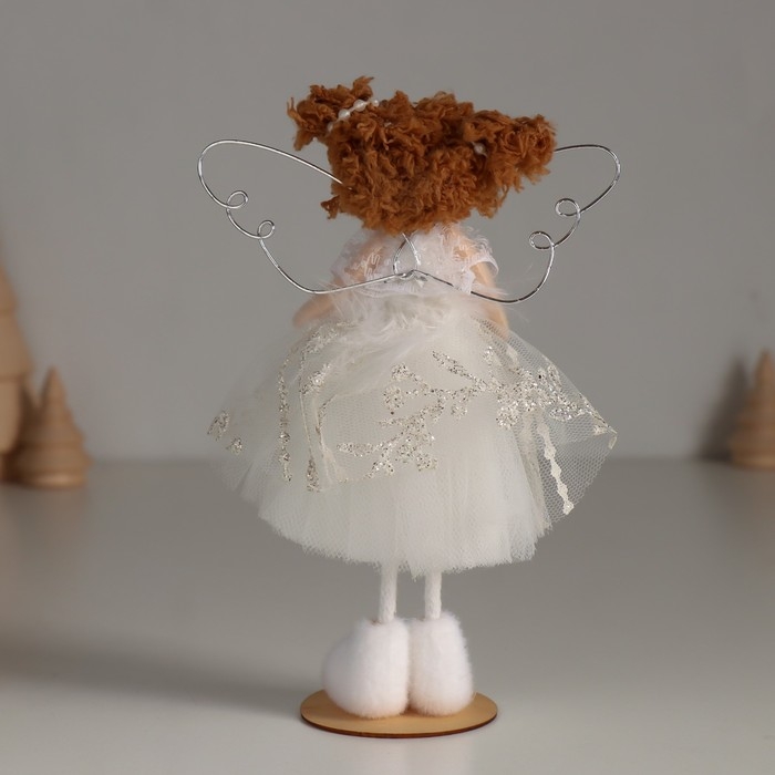 Кукла интерьерная "Ангелочек в белом платье с узорами и пушком" 5,5х10х16 см