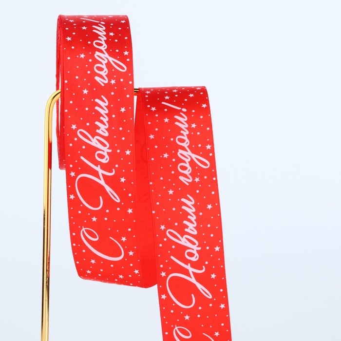 Лента атласная «С Новым годом!», красная, 4 см х 22.5 м, Новый год
