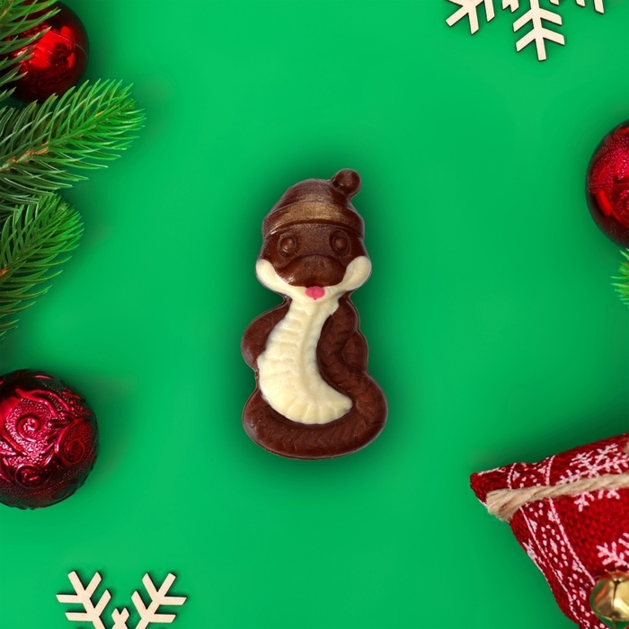 Представляем вам мини-шоколадку "Веселая змейка" — сладость, которая станет великолепным угощением ваших новогодних и рождественских праздников! Эта фигурная шоколадка из молочного шоколада оформлена в виде обаятельной змеи, символизирующей удачу, процветание и благополучие в 2025 году.