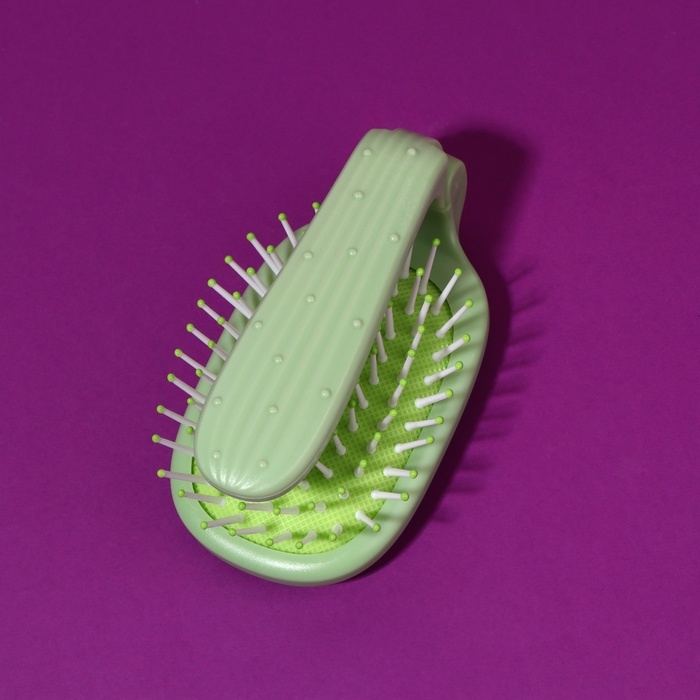 Расчёска массажная, складная, 10 × 6 см, цвет зелёный