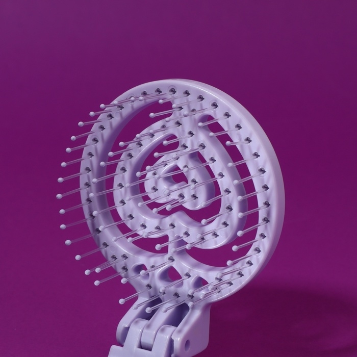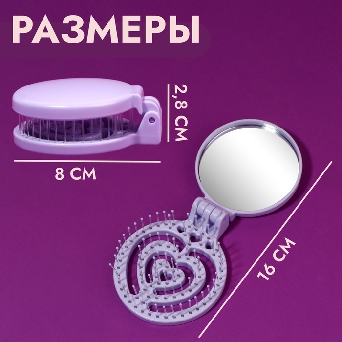 Расчёска массажная, складная, с зеркалом, d = 6,6 см, цвет сиреневый