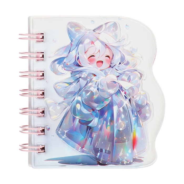 Записная книжка подарочная на гребне 80л,линия, цветной блок,облож.ПВХ 3D Аниме(10,2х10,5см) 10539