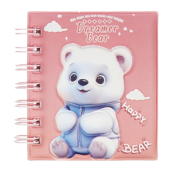 Записная книжка подарочная на гребне 80л,линия, цветной блок,обложка ПВХ 3D Мишка(10х10,5см) 10539