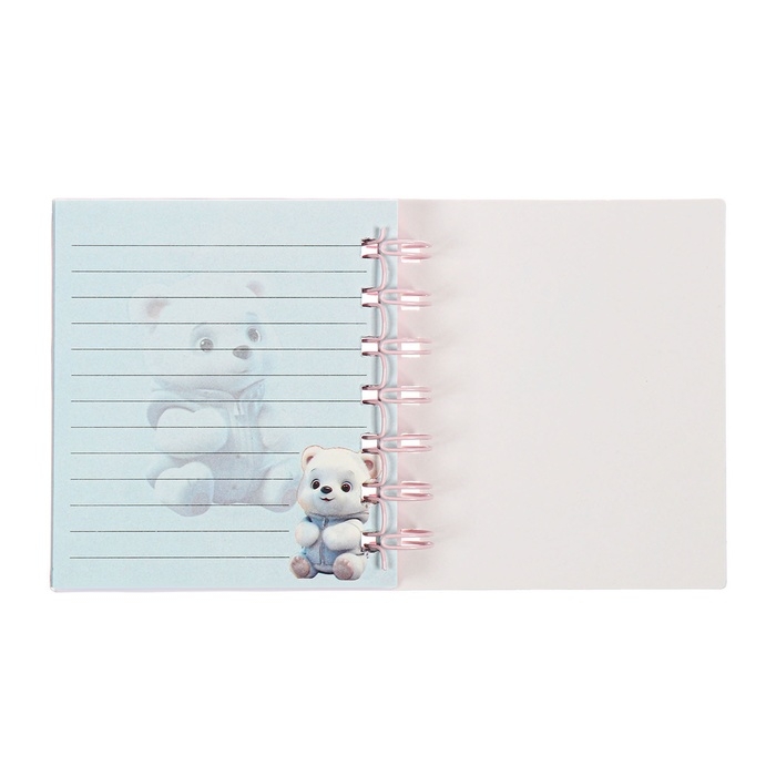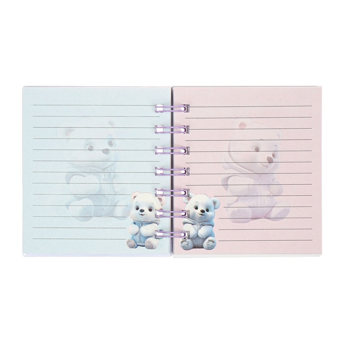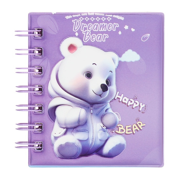 Записная книжка подарочная на гребне 80л,линия, цветной блок,обложка ПВХ 3D Мишка(10х10,5см) 10539