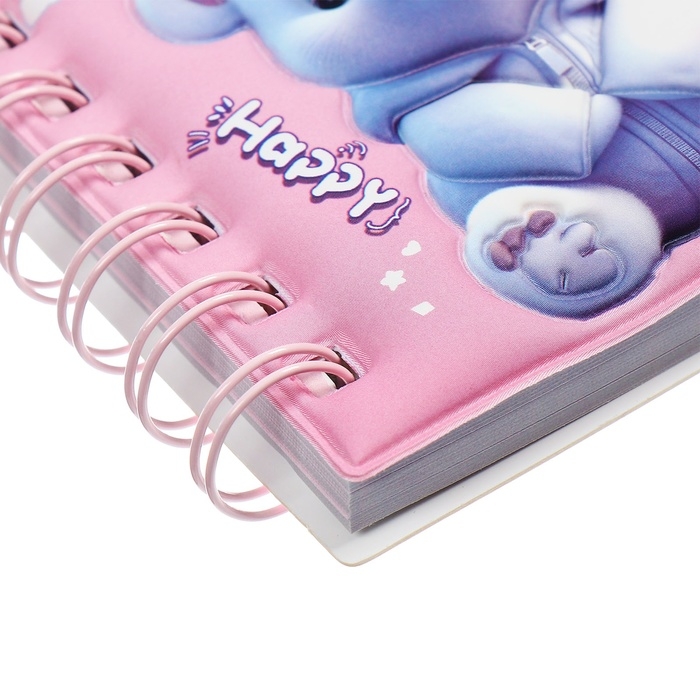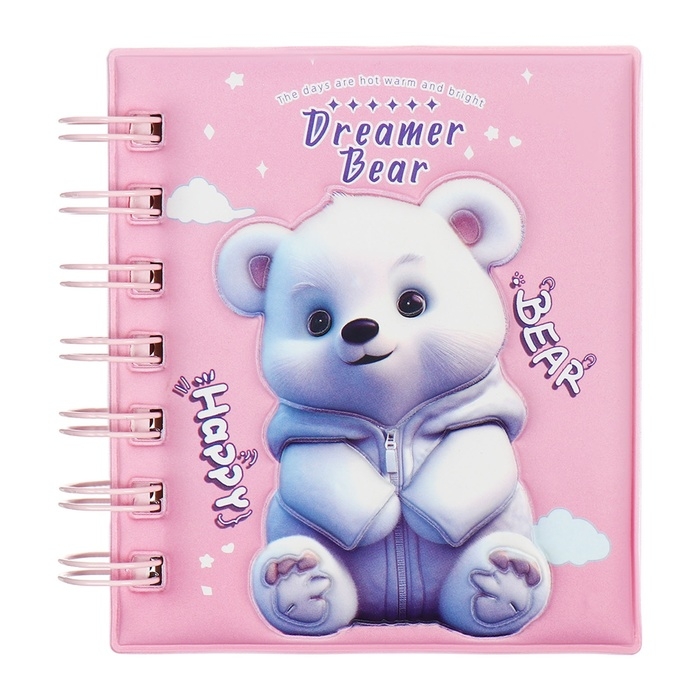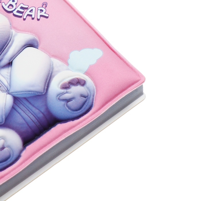 Записная книжка подарочная на гребне 80л,линия, цветной блок,обложка ПВХ 3D Мишка(10х10,5см) 10539