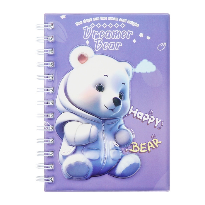 Записная книжка подарочная на гребне 80л,линия, цветной блок,обложка ПВХ 3D Мишка(17,6х13,5см) 105