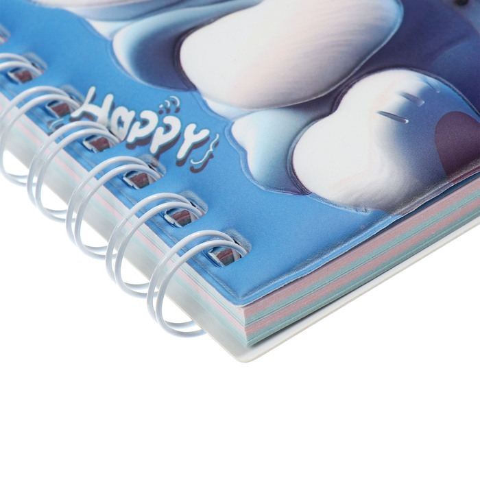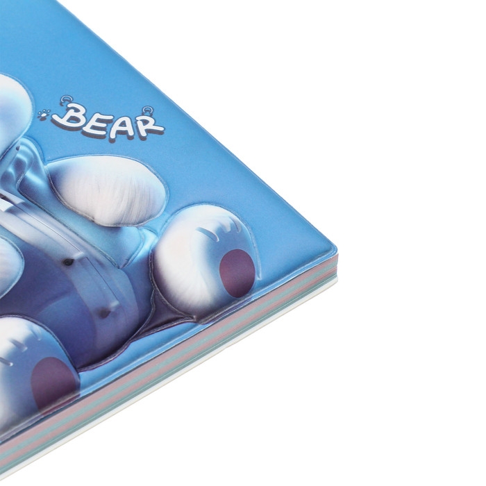 Записная книжка подарочная на гребне 80л,линия, цветной блок,обложка ПВХ 3D Мишка(17,6х13,5см) 105