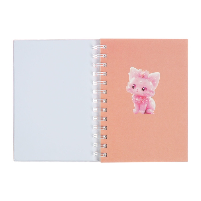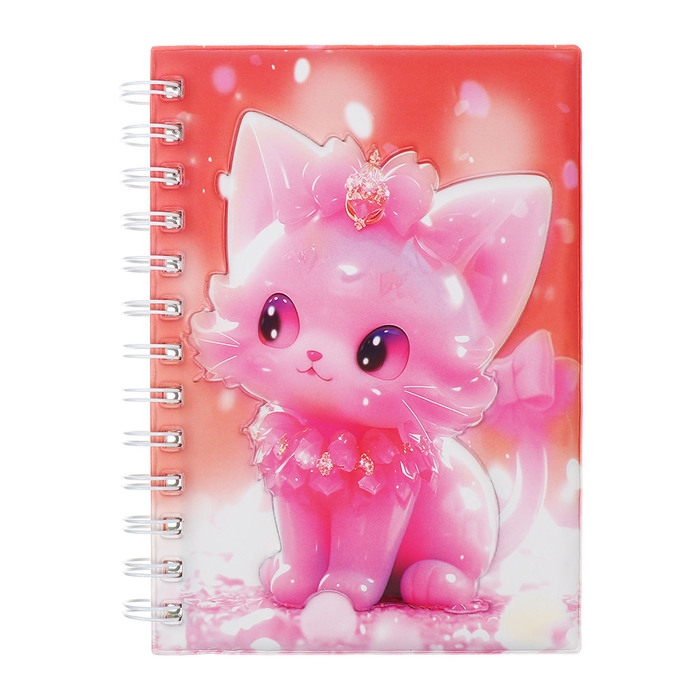 Записная книжка подарочная на гребне 80л,линия, цветной блок,обложка ПВХ 3D Кошка(17,6х13,5см) 105