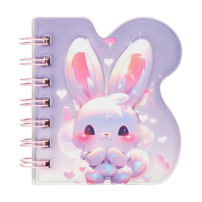 Записная книжка подарочная на гребне 80л,линия, цветной блок,обложка ПВХ 3D Зайка(10х10,5см) 10539