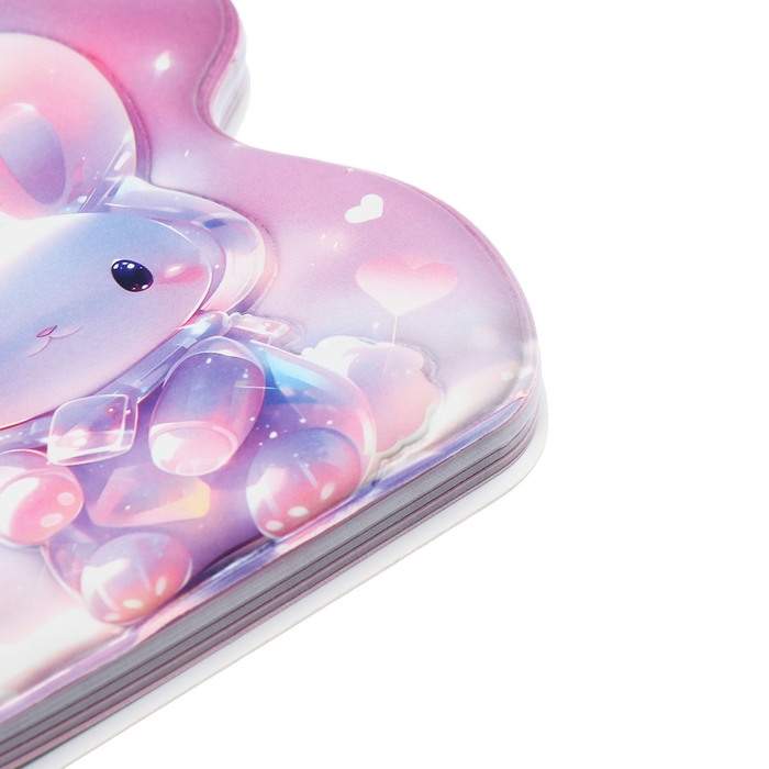 Записная книжка подарочная на гребне 80л,линия, цветной блок,обложка ПВХ 3D Зайка(10х10,5см) 10539