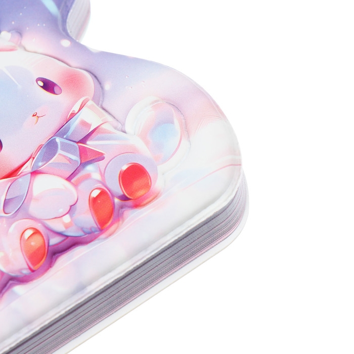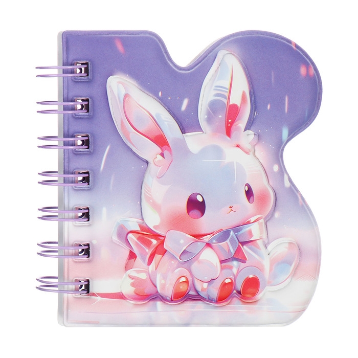 Записная книжка подарочная на гребне 80л,линия, цветной блок,обложка ПВХ 3D Зайка(10х10,5см) 10539
