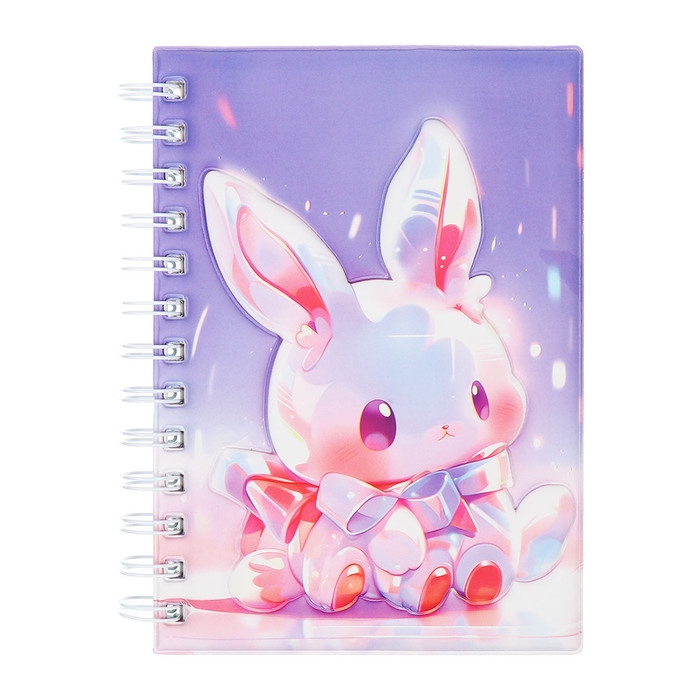 Записная книжка подарочная на гребне 80л,линия, цветной блок,обложка ПВХ 3D Зайка(17,6х13,5см) 105