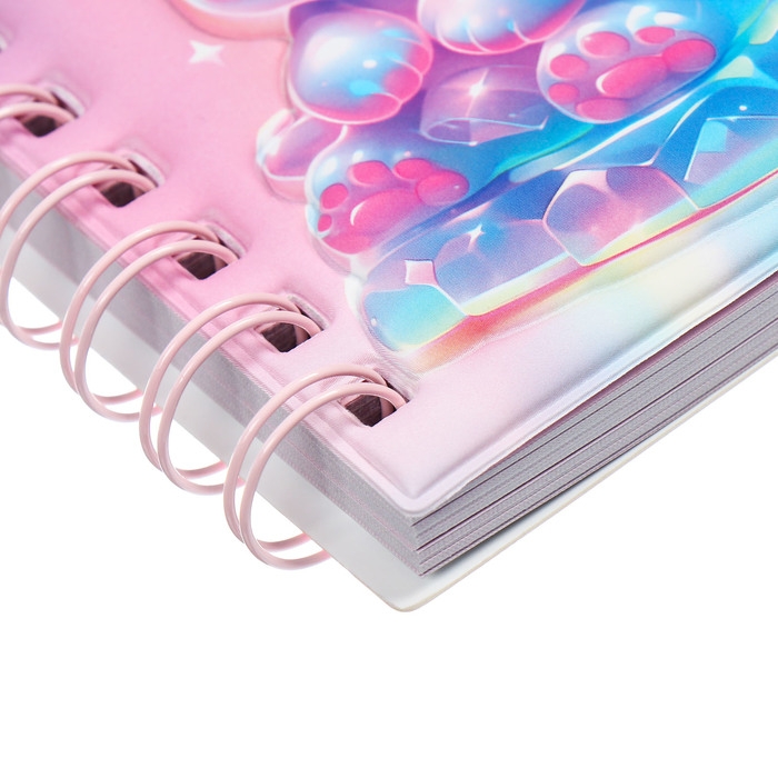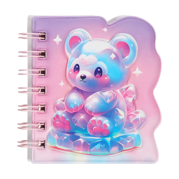 Записная книжка подарочная на гребне 80л,линия, цветной блок,обложка ПВХ 3D Мишка(10х10,5см) 10539