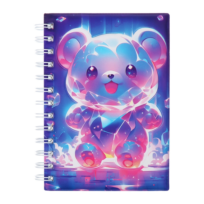 Записная книжка подарочная на гребне 80л,линия, цветной блок,обложка ПВХ 3D Мишка(17,6х13,5см) 105