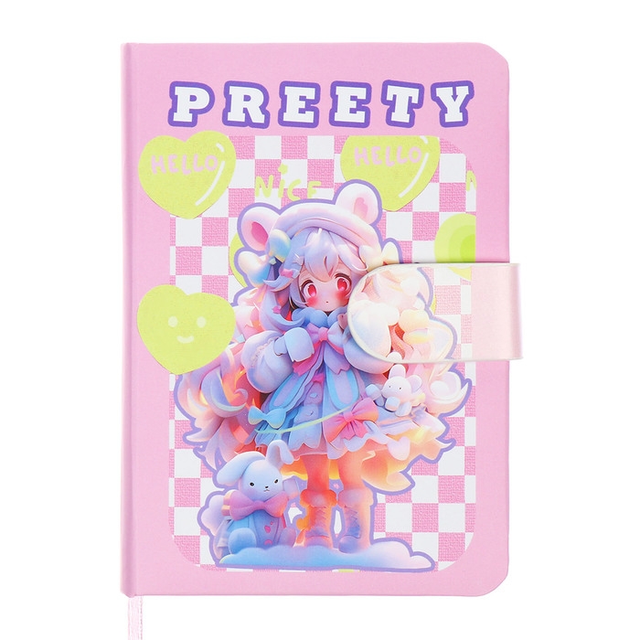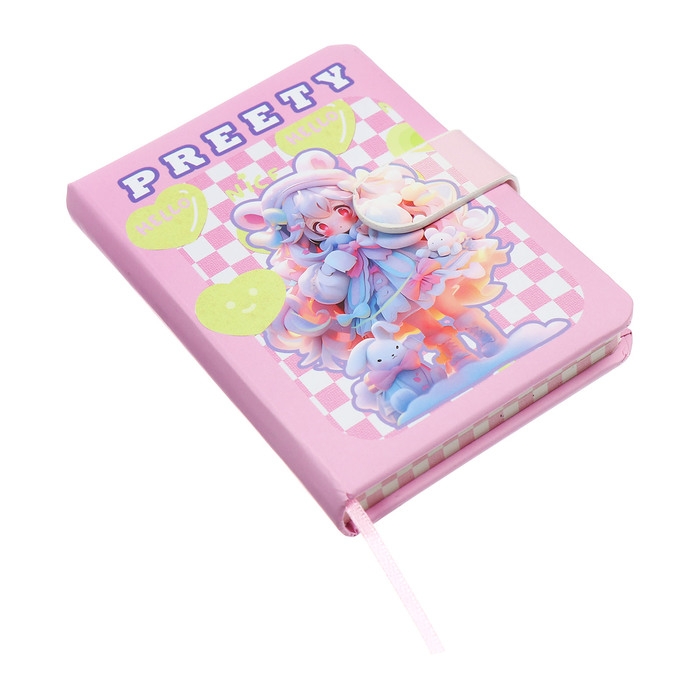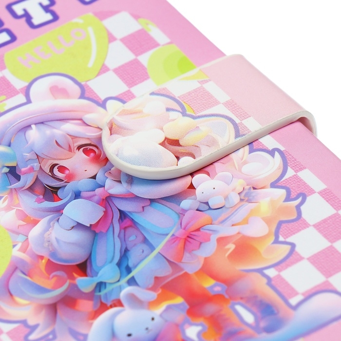 Записная книжка подарочная 96л,линия, с хлястиком, срез с рисунком обложки, Аниме (12,9х9см) 10539