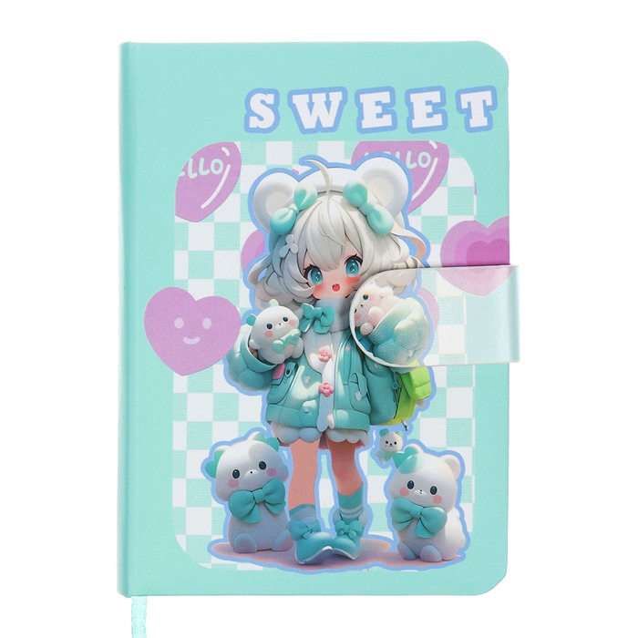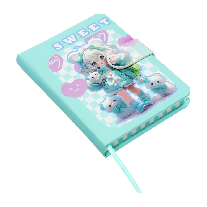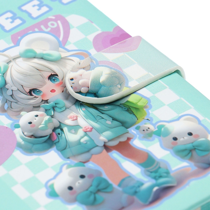 Записная книжка подарочная 96л,линия, с хлястиком, срез с рисунком обложки, Аниме (12,9х9см) 10539