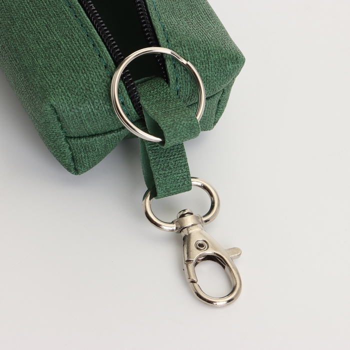 Ключница на молнии, длина 16 см, кольцо, карабин, цвет зелёный