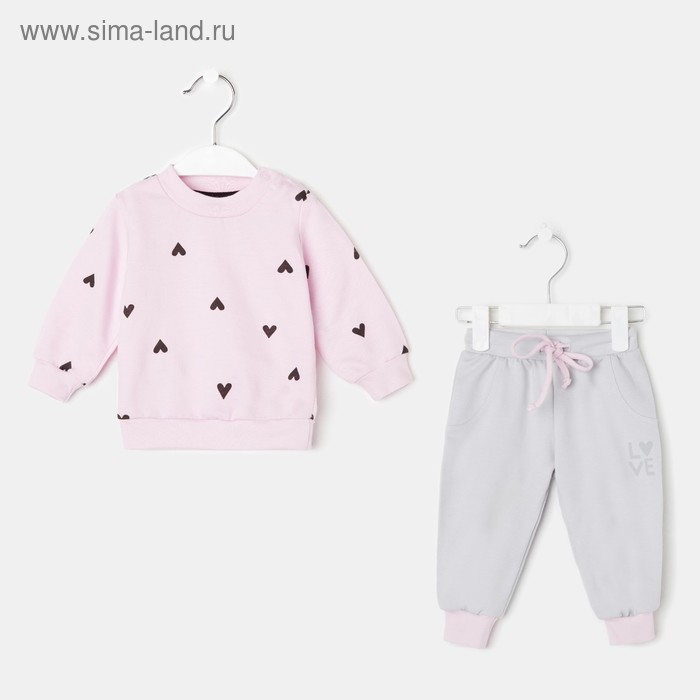 Комплект: джемпер и брюки Крошка Я «Сердечки», цвет розовый/серый, рост 86-92 см