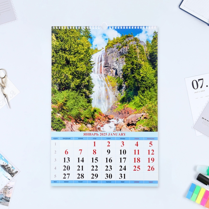 Календарь перекидной на ригеле А3 "Водопады" 2025, 32 х 48 см