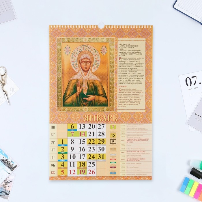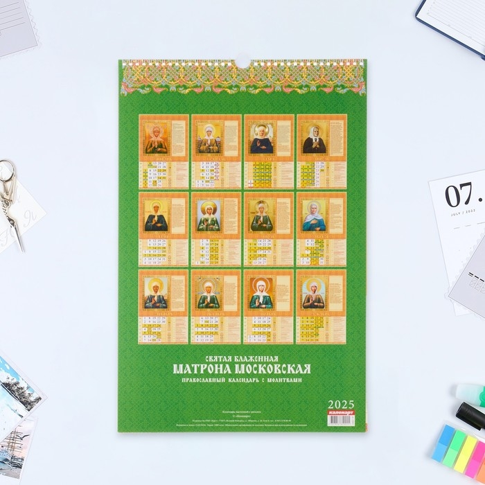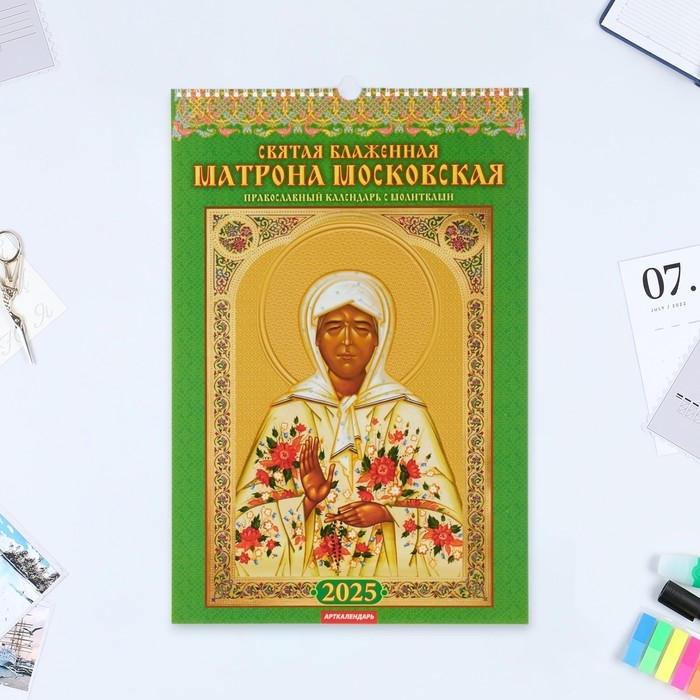 Календарь перекидной на ригеле А3 "Матрона Московская" 2025, 32 х 48 см