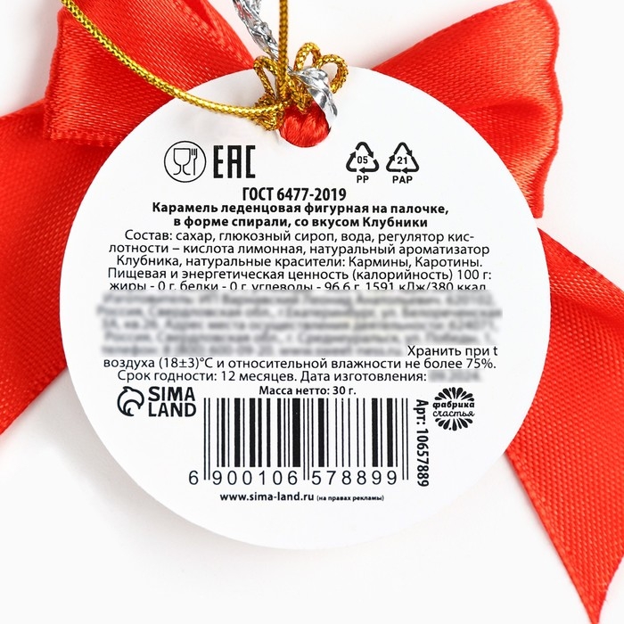 Новый год! Леденец, ёлочная игрушка в форме спирали «Змея 2025», со вкусом клубники, 30 г