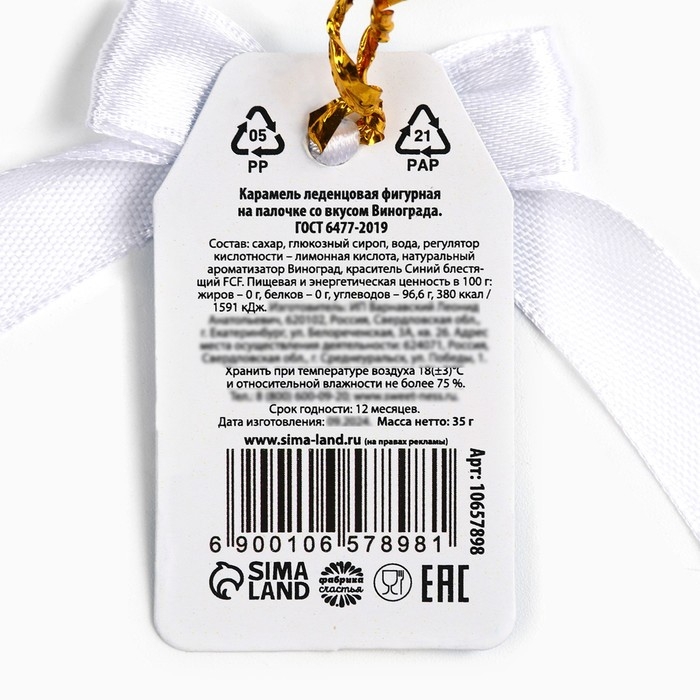 Новый год! Леденец на палочке «Попробуй зиму на вкус», со вкусом винограда, 35 г